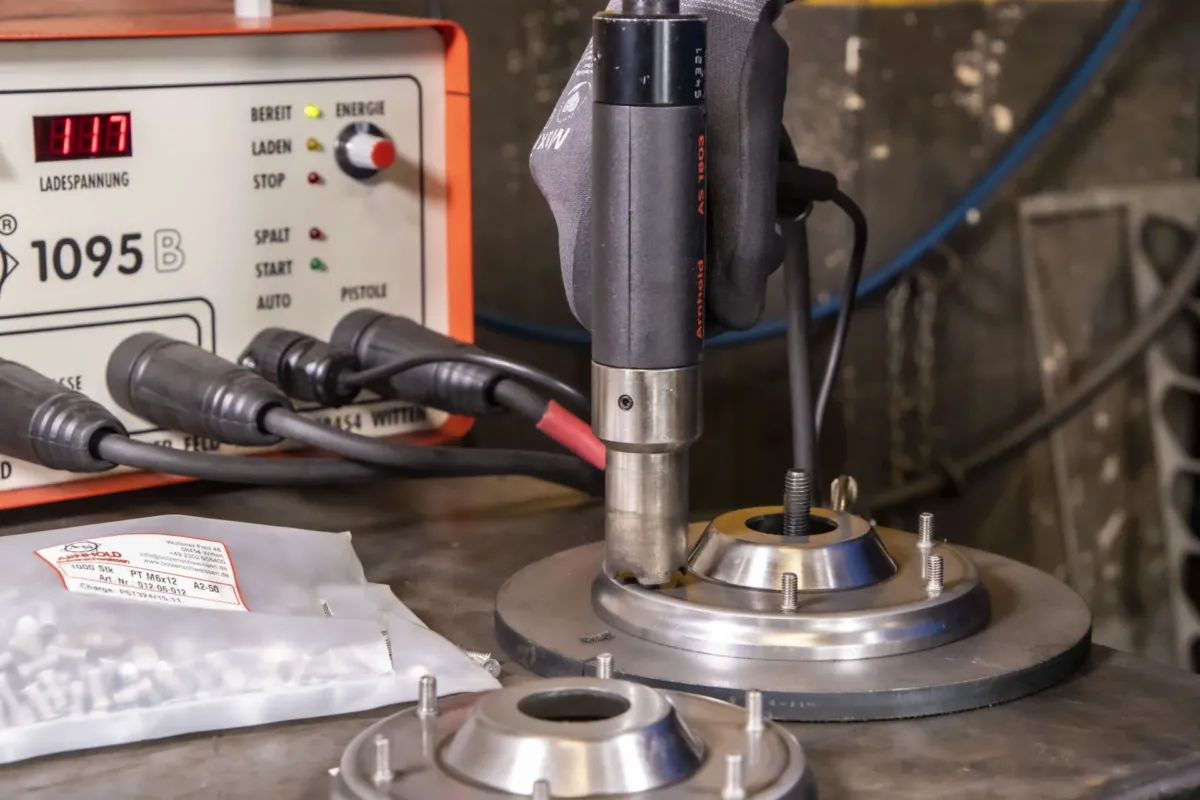 Das Bolzenschweißen stellt eine spezielle Variante des Lichtbogenschweißens dar. Das Verfahren wird genutzt, um eine sehr feste und dauerhafte Verbindung zwischen dem Bauteil und dem Bolzen zu erzeugen. Dieses Verfahren zeichnet sich durch seine Effizienz aus. Denn das Bolzenschweißen kann in kurzer Zeit ausgeführt werden. Da die Oberfläche elektrisch leitfähig sein muss, sollte kein Lack oder Rost auf dem Werkstück sein. Auch diesen Arbeitsschritt übernehmen wir.